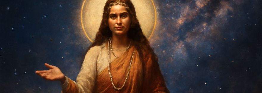 Ānandamayī Mā (1896–1982) va ser una mística índia venerada com a incarnació de la Mare Divina. La seva presència irradiava beatitud i compassió, i ensenyava la consciència constant del sagrat en tot.
