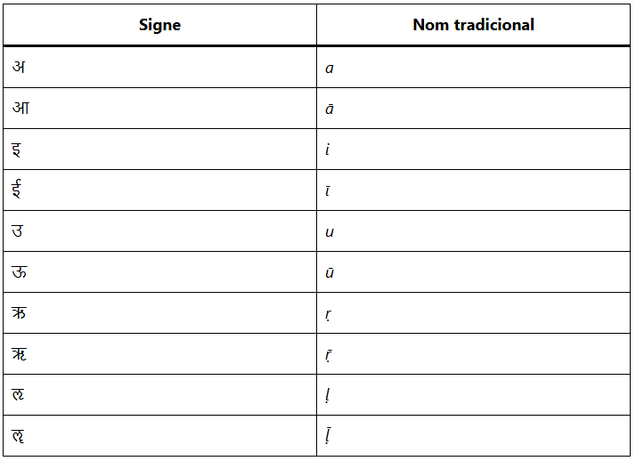 Les 3 darreres (ṛ, ḷ, ṝ) s’anomenen vocals sil·làbiques.